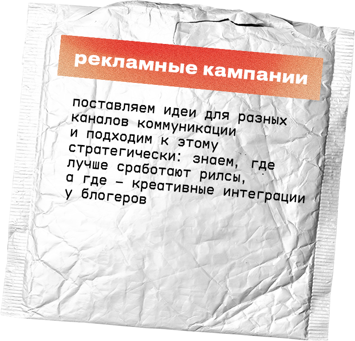 поставляем идеи для разных каналов коммуникации и подходим к этому стратегически: знаем, где лучше сработают рилсы,
